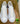 Sneakers bianche lucide con lacci, punta oversize rotonda in gomma e dettagli neri sulla parte posteriore. Finitura traforata sulla parte esterna della scarpa. Interno foderato in capretto e 7 fori in metallo. Lacci piatti e logo Alexander McQueen sulla linguetta e sul tallone. Suola oversize in gomma.